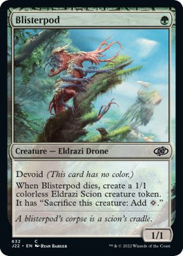 When Blisterpod dies, create a 1/1 colorless Eldrazi Scion creature token. It has “Sacrifice this creature: Add {C}.”